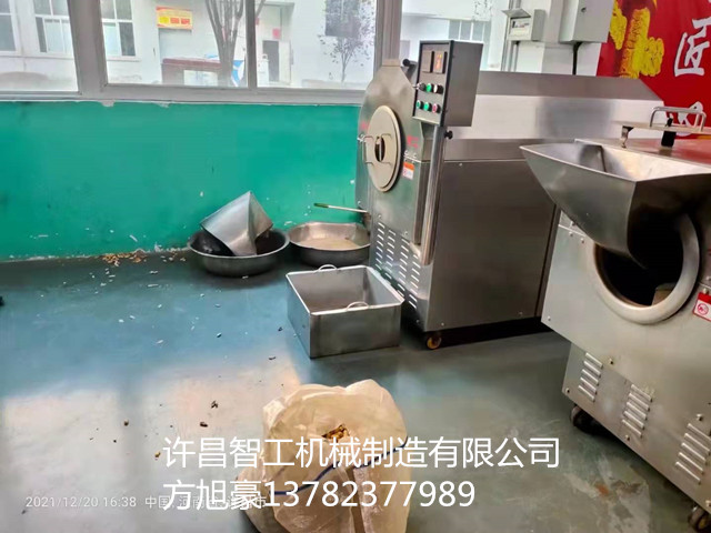 2021年12月20日,河南南阳客户带50斤花生来厂试机许昌智工DCCZ5-10型电磁炒货机。
