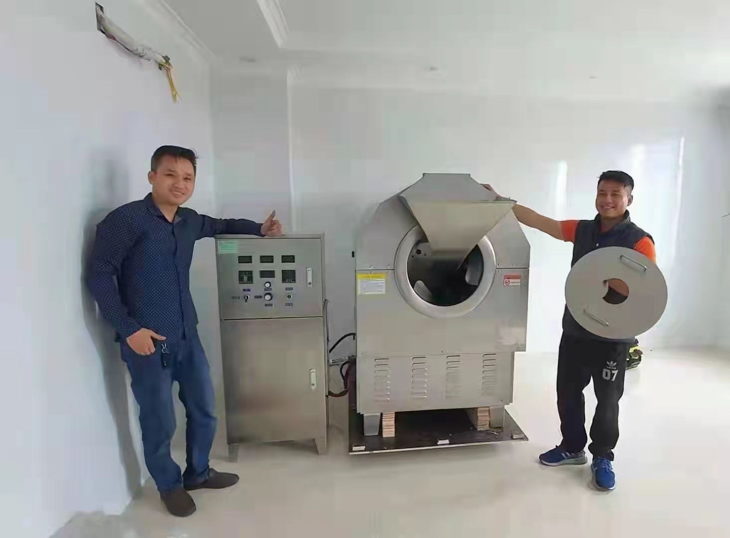 3.11日,越南客户订购的许昌智工7-10型电磁炒货机已经到位,并且在我们技术工作人员的耐心指导下已经调试完成,见到自己机器终于可以投入使用,客户露出了满意认可的笑容!!!感谢国外客户对我们智工的支持和信任,同时也祝您事业顺风顺水,落地生金!!!