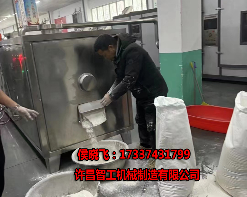 2.29日,江苏客户带来几百斤玉米淀粉和面粉来厂试机考察我们许昌智工电磁炒面粉机械,炒出来的效果非常满意,客户回去实验后在确定用多大的,感谢客户对我们许昌智工炒面粉机器的支持和信任!!!