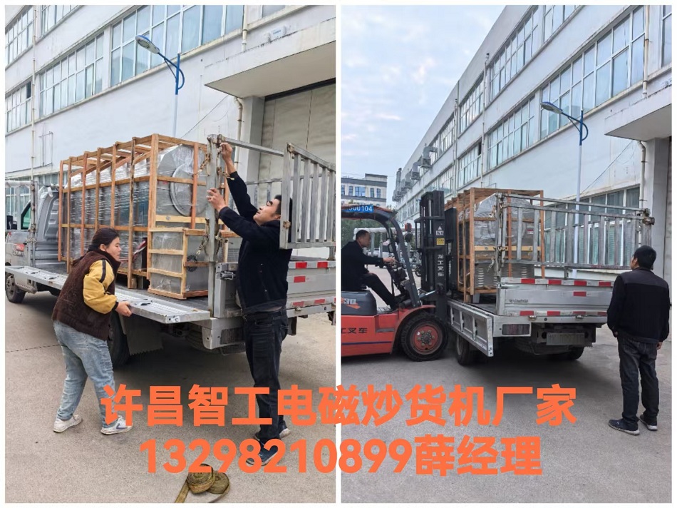 10月19日,7-15型200斤电磁炒货机专车发货河南郑州。