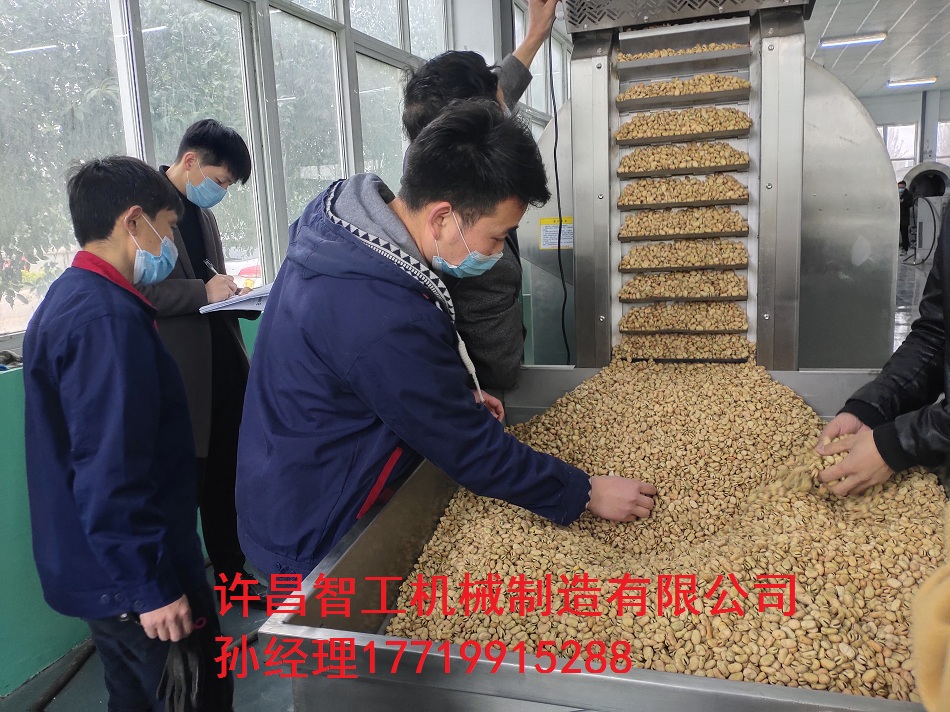 4月2日,四川客户寄来3000斤蚕豆试机许昌智工8米流水线炒!