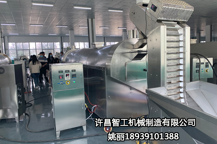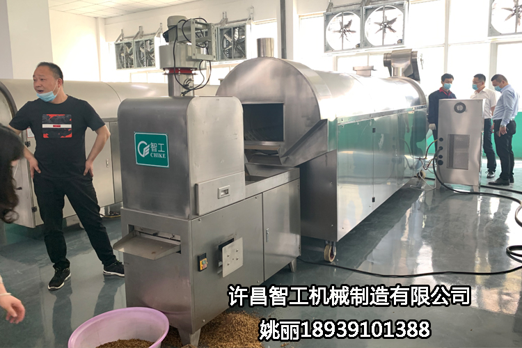 4月28日,江苏南京客户来厂试机四米炒货机生产线炒制黄粉虫,经过现场的试炒,客户把炒出来的产品和带过来样品的比对,达到理想效果,意向四米电磁炒货机生产线一套,已达成合作意向。
