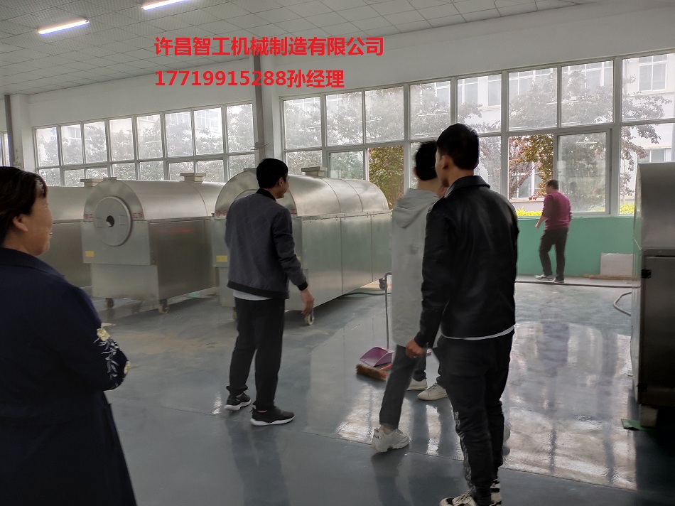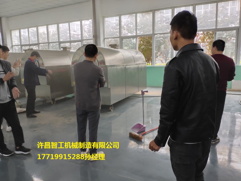 5月9日,河南客户自带200斤花生果来许昌智工试机炒制,一会看效果。咨询热线:17719915288孙经理(微信同号)