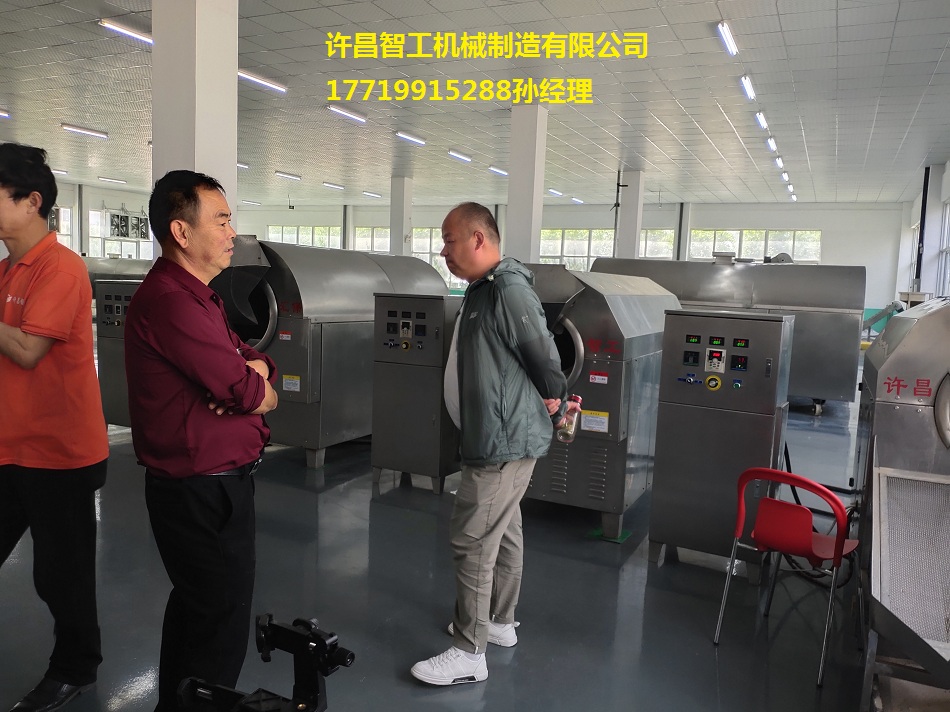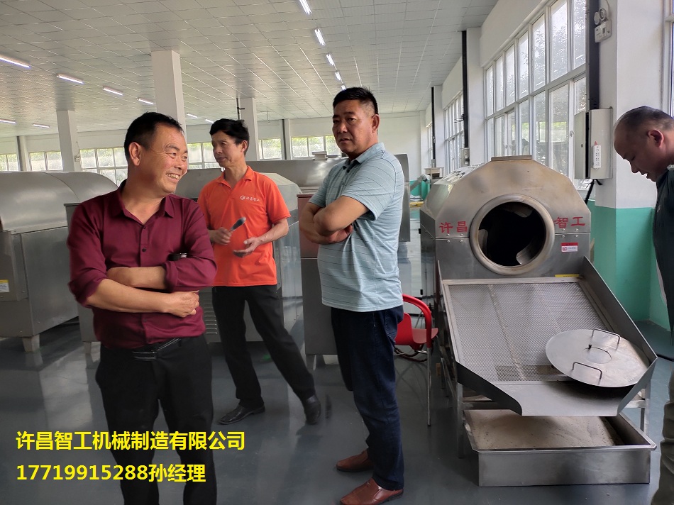 5月16日,欢迎安徽客户来厂考察炒瓜蒌子设备,咨询热线17719915288孙经理