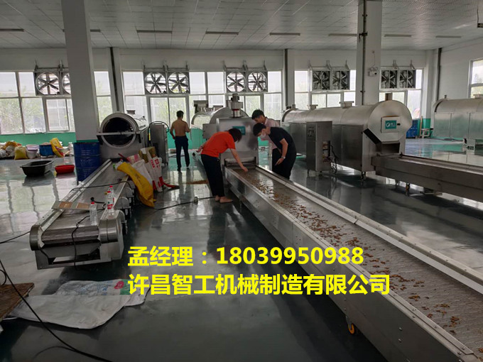 5月17日,客户来厂试机六米电磁流水线炒虫子。18039950988