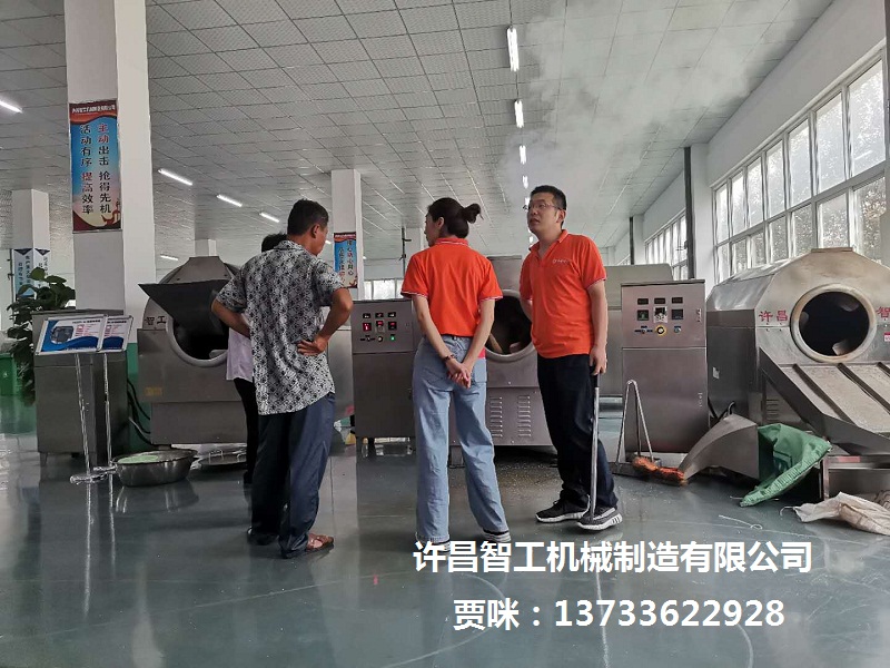2020年7月10号上午,山东客户一行3人到许昌智工参观考察200斤电磁炒芝麻设备并试机,客户对试机后的效果非常满意直接定机DCCZ7-15型电磁炒货机设备一台,感谢您的支持与信任!!!
