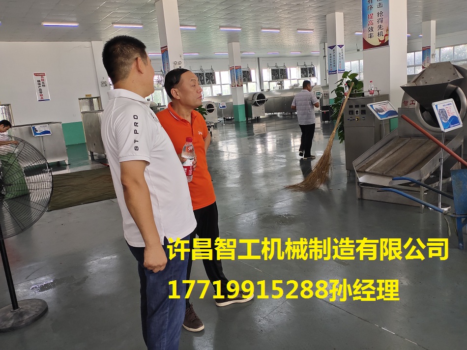 2020年8月10日,炎炎酷暑,天气闷热,欢迎山东双营食品公司一行三人来许昌智工试机炒牛蒡!客户用DCCZ7-10电磁炒货机进行测试,经过两次试机,达到客户满意,期待合作!咨询热线:17719915288孙经理