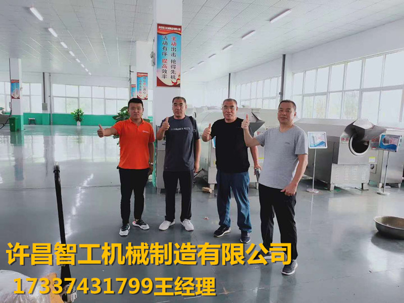 8月19日,河北客户三人带芝麻物料来许昌智工厂实地考察设备,应对客户产量需求试机DCCZ7-10型电磁炒锅炒制芝麻,一锅可容100斤25分钟炒制好磨油芝麻;客户对炒制效果满意,现场达成合作意向,订购DCCZ7-10型设备.客户的认可与满意是我们服务的宗旨!