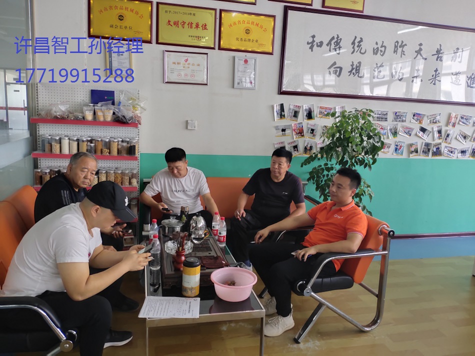 2020年9月3日,河北客户冯总一行4人来我公司考察并现场签单订购一台DCCZ7-15型电磁炒货设备,感谢您的信任与支持!许昌智工,伴您成功!服务热线:17719915288孙经理(微信同号)