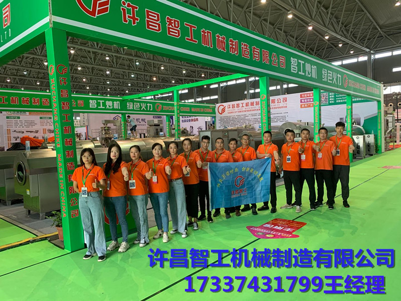 合肥坚果炒货节为期三天时间,许昌智工机械设备有限公司为了给广大亲临现场客户提供完善方便的考察,大中小型设备一应俱全的摆放现场,各个销售经理也是热情满满的为到场客户详细介绍各款设备!