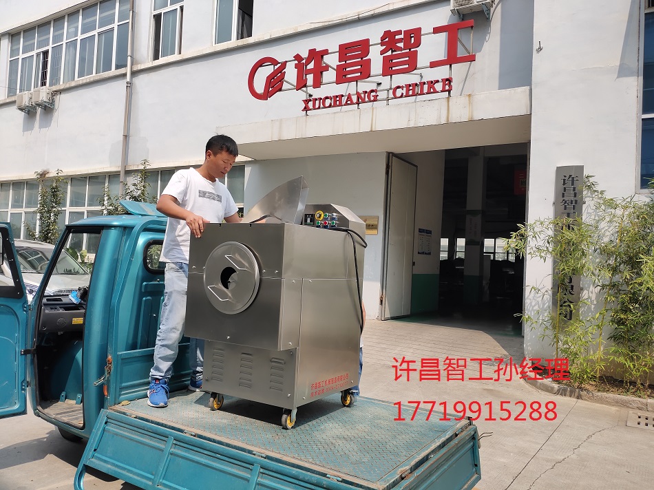 2020年9月22日,"皇栗皇”的曹经理来我公司自提一台5-5型电磁炒板栗机。新板栗上市了,好多门店都陆续开业,许昌智工多功能电磁炒货机销量很好,两相电机器供不应求,客户订单一个接一个,排起了长长的队伍,请你们耐心等待,我们会按照订单的先后顺序发货。全国服务热线:17719915288孙经理(微信同号)