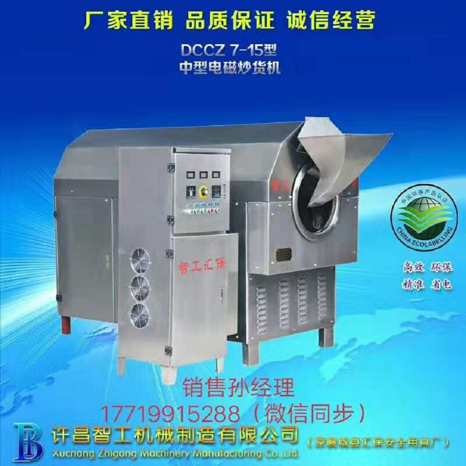 许昌智工多功能电磁炒货机应用领域广泛,炒花生、芝麻、大豆、玉米、炒所有的五谷杂粮;炒中药材,炒调味品等产品效果很好,具备自动恒温、滚筒炒锅受热均匀、转速可调可控,不同物料设置不同的炒制温度,机器锅内物料温度到达设定标准自动警报,一键反转出锅,使用非常方便。