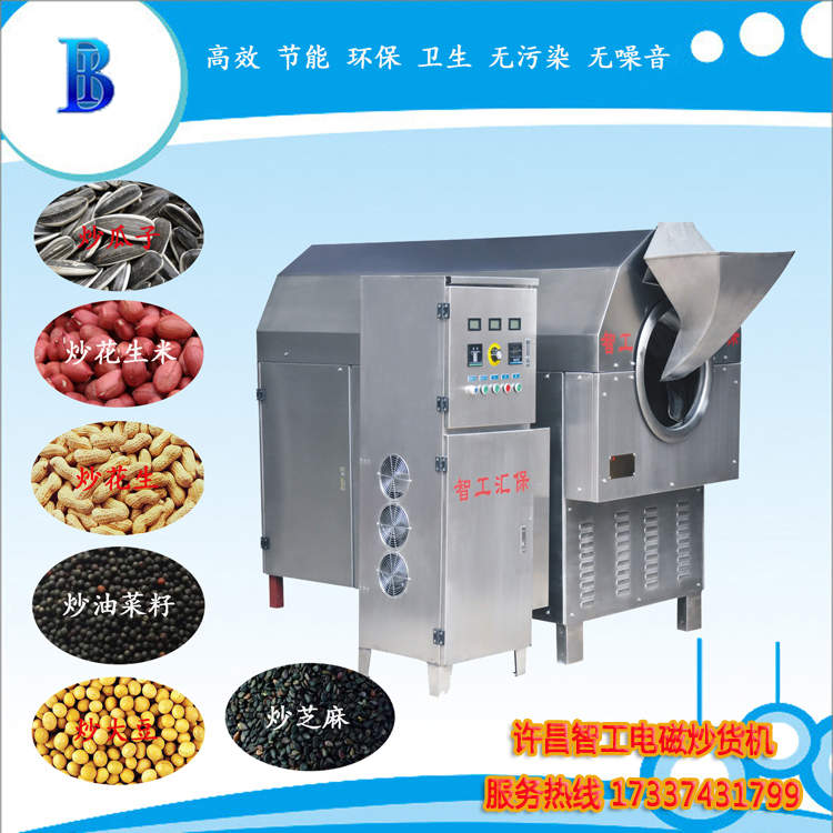 4、在炒制过程中,无聊在滚筒内立体翻炒不粘锅。出锅方便,只要一按顺倒转开关就可以出锅过筛分离,无需人工分离;