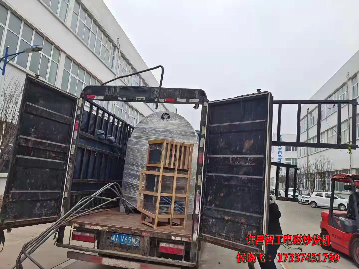 2.11日,客户订购的500斤电磁炒货机发货浙江,话不多说,有图有实物: