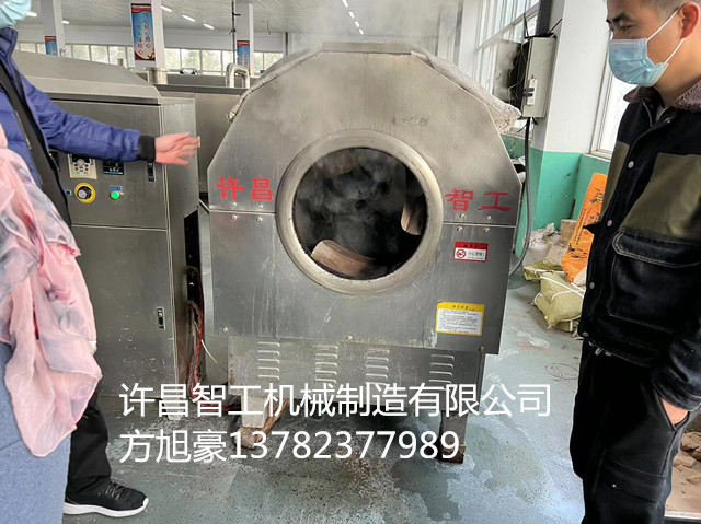 2022年12月12日,江西客户一行三人,带100斤黑芝麻驱车来到许昌智工机械制造有限公司试机电磁炒货机。