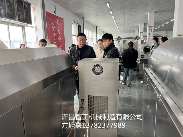 2月21日,内蒙客户一行二人来到许昌智工机械制造有限公司考察电磁炒货设备。