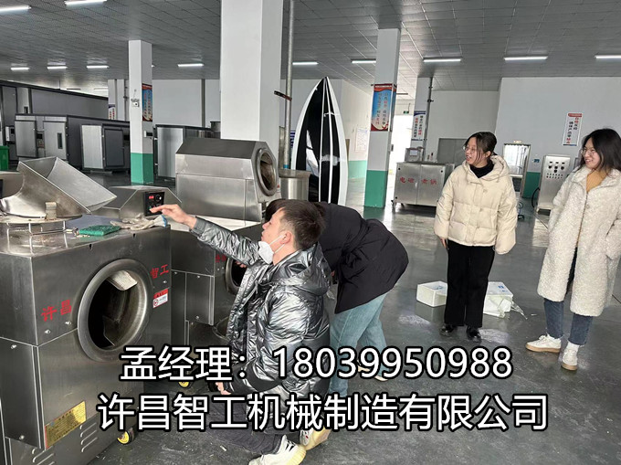 2️21日,河南客户来厂试机小型电磁炒货机炒制青麦! 许昌智工孟经理18039950988