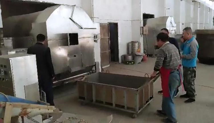 郑州得劲瓜子厂使用许昌智工脱皮瓜子烘炒机炒制脱皮瓜子!