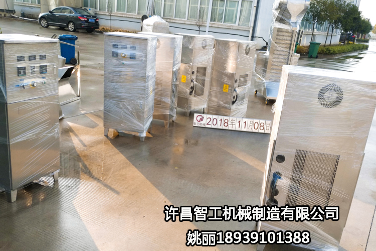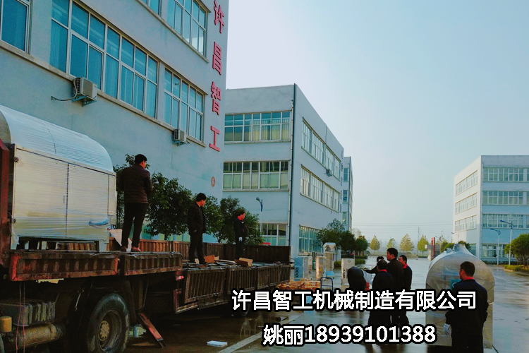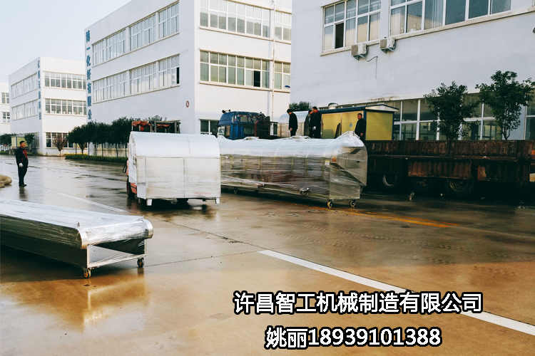河北张家口涿鹿县王老板在许昌智工订购的一批炒货设备,其中包括六米炒杏仁生产线一套,dccz9-16型多功能炒货机4台,大型电磁煮锅一台,2018年11月8日装车发货。