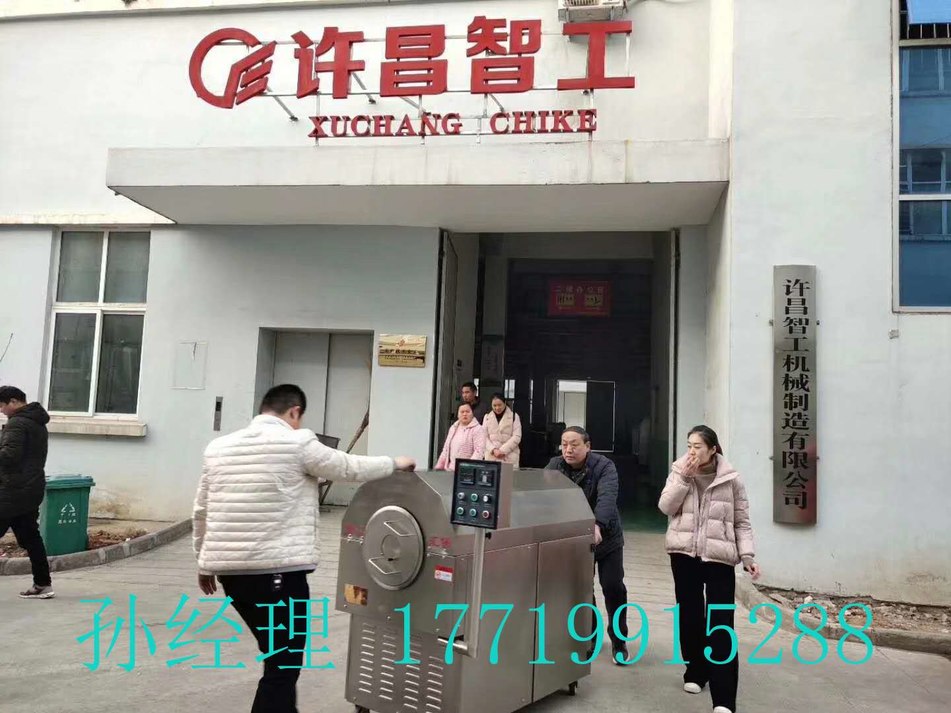 2018年12月18日,中华药都亳州的李总一行4人带着入了味的花生米来许昌智工考察试机,用DCCZ5-10电磁炒货设备炒五香花生米,一锅装25斤,炒制前锅内先加盐,把盐的温度达到150度时把花生米入锅,加热档位用5挡,炒制8-10分钟出锅,效果非常满意,李总对许昌智工炒货机赞不绝口!直接订购装车拉走!