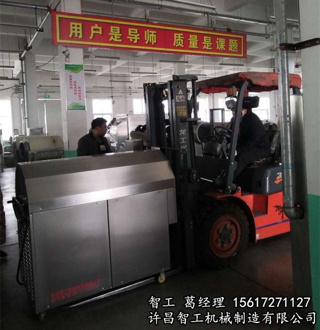 1月12日,辽宁客户方总一行三人来许昌智工考察电磁炒货机,方总公司是以生产五香花生米为主的食品加工厂,以前使用老旧燃煤炒锅,为响应国家节能环保的号召积极改进更换设备,经过考察研究最终选择我们许昌智工智能电磁炒货机,客户对我们的设备非常满意、称赞连连,现场订购一台DCCZ 5-10型多功能电磁炒货机,直接装车拉走!——祝方总生意兴隆,财源广进!