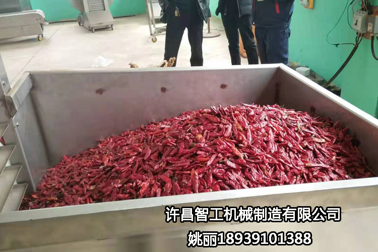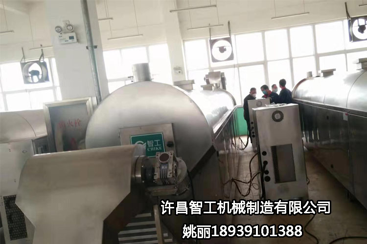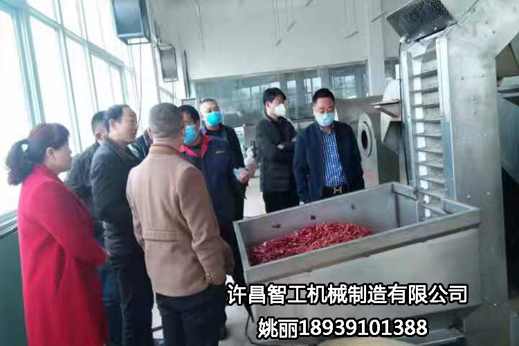 欢迎河南漯河客户(2月27日)来许昌智工考察试机六米流水线电磁炒货机炒辣椒!——期待合作共赢!