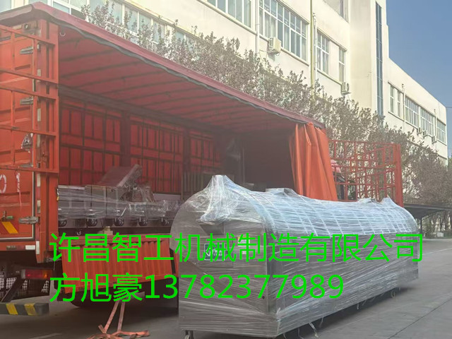 2025年10月28日,许昌智工八米电磁流水线炒亚麻子设备装车发货新疆。