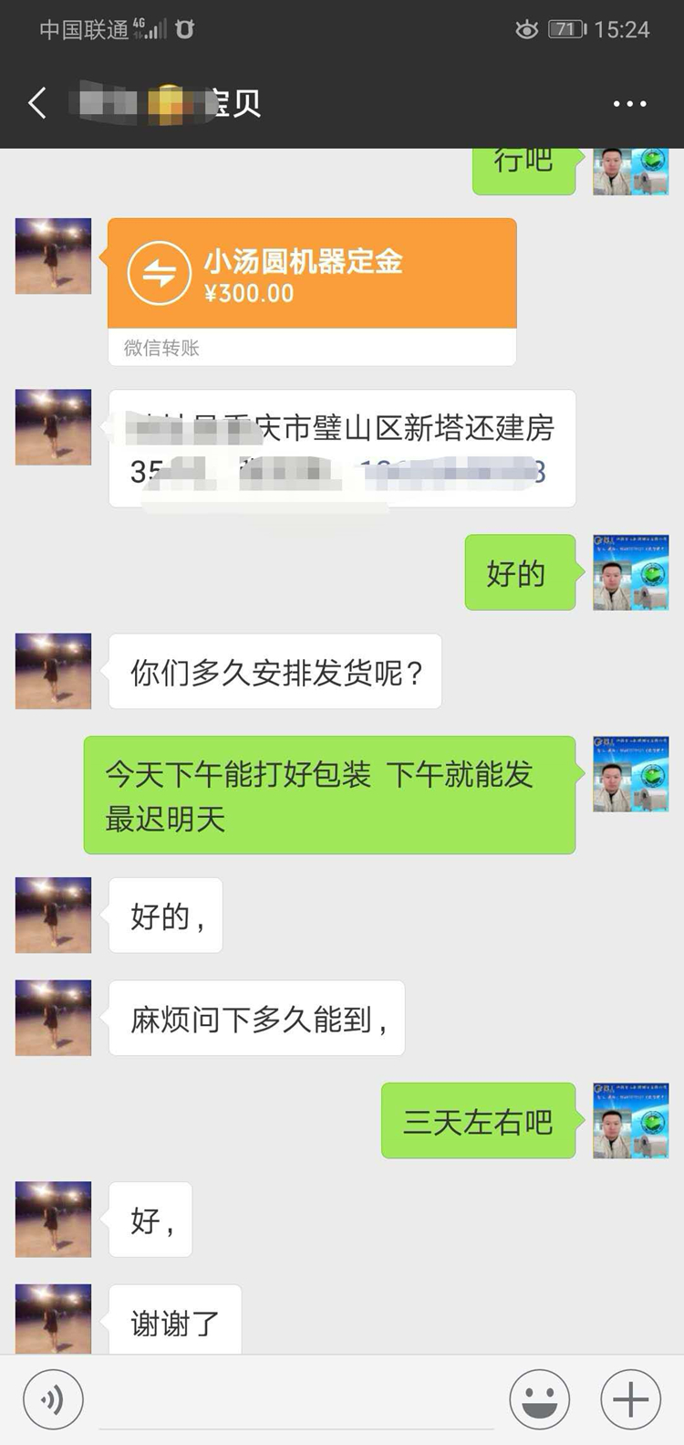 经过我们细心的介绍,耐心的解说!重庆客户从最初的不信任到现在打款订购设备,您给我信任,我还您满意!成交只是服务的开始!合作共赢,共同发展!