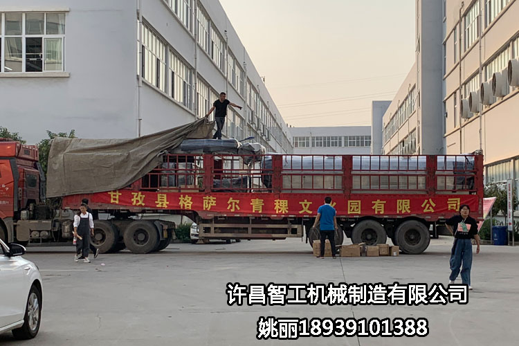 九月二十八日四川客户在许昌智工订购的两条六米炒青稞电磁炒货机流水线制作完毕,装车发往四川甘孜县