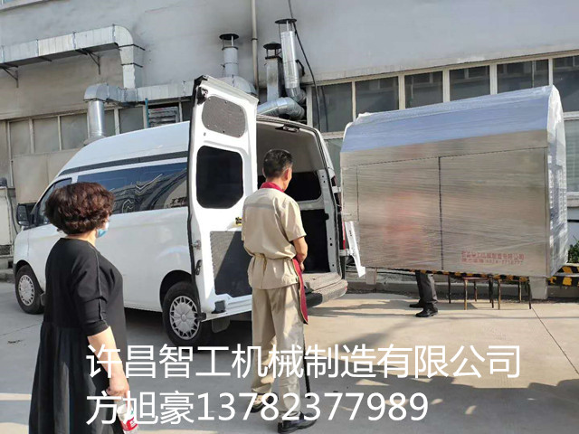 2020年5月5日,河南郑州客户驾驶全顺车来厂订购许昌智工DCCZ7-10型电磁炒货机一台现场装车拉走。