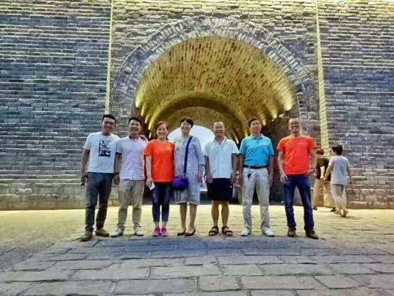 分别来自陕西、开封、信阳的客户相聚许昌智工,考察测试智能型电磁炒货机,并在襄城明清古街北城门合影留念