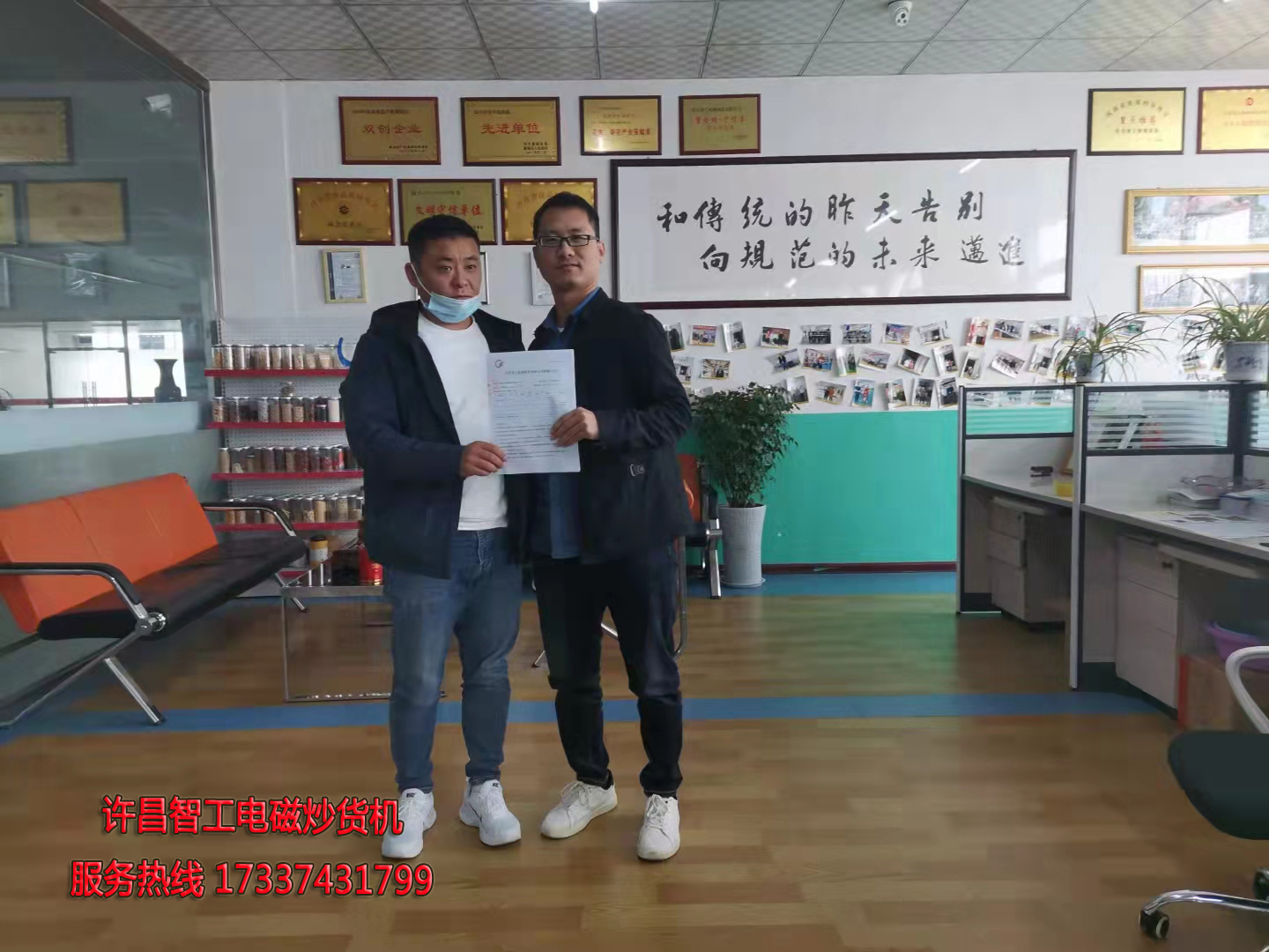 10.13日,河南信阳的老乡来厂参观我们许昌智工生产车间,老乡也是经我们老客户推荐来参观考察的,想着买一台炒瓜子的机器放在店里用。随后我给老乡介绍了我们许昌智工的一些生产情况,客户对我们许昌智工非常认可,转了机器的定金,改天发货。感谢老乡的支持。全国服务热线17337431799.智工侯经理。