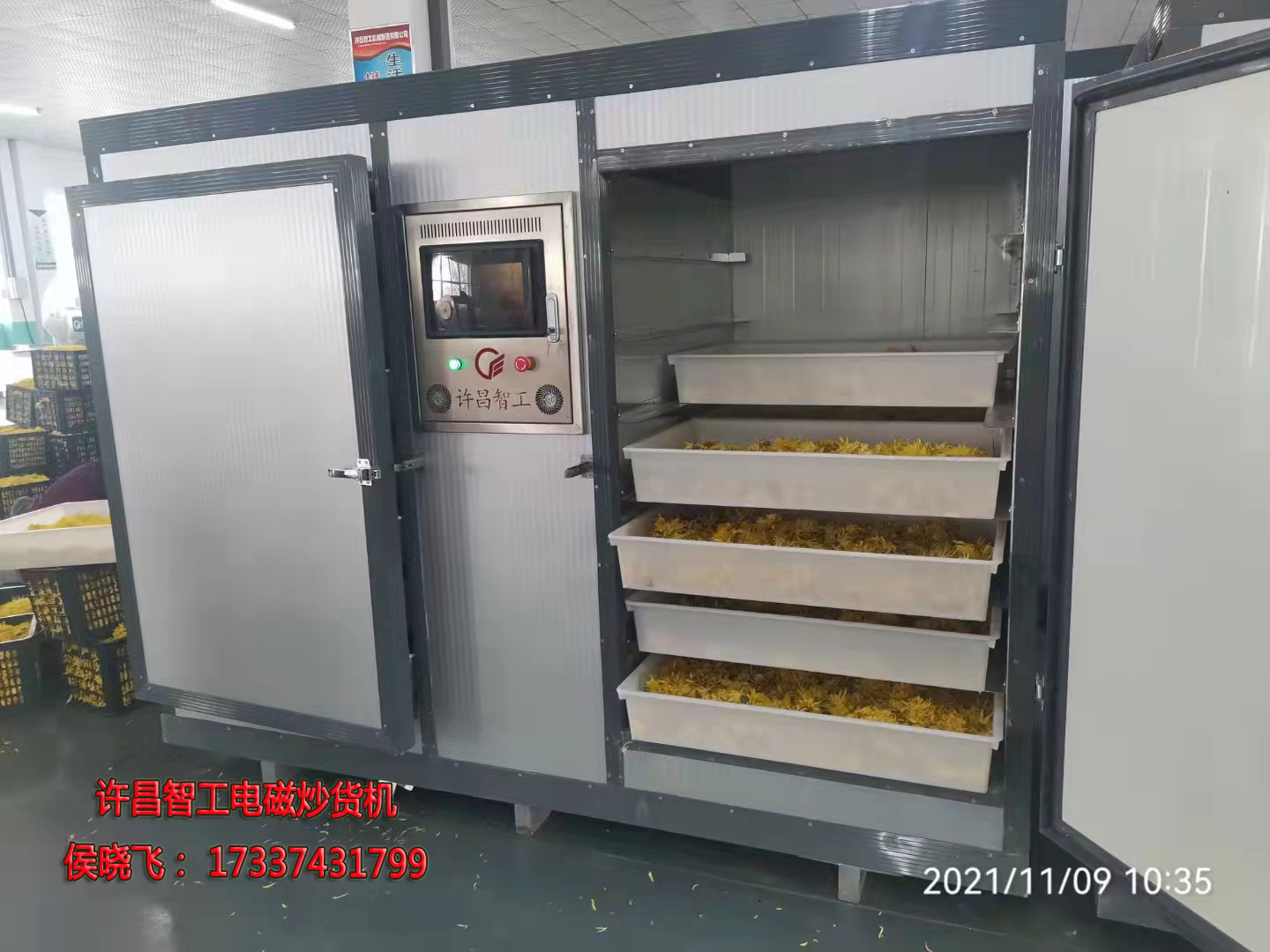 11.9日,当地的老乡带来自己种植采摘的金丝菊,让我们为其加工烘干,说起金丝菊想必大家都不陌生,金丝菊是花茶的一种,菊花茶是最佳的降火良药,因干燥旺火导致的痤疮、咽喉发炎、外感风热、头痛、口腔溃疡等症状,只要适量的饮用菊花茶就能达降火的作用,而许昌智工生产的双开门烘干箱,除了能烘干茶叶,和还可以烘干药材,食品农副产品等物料,PLC智能控制,操作方便。咨询热线:17337431799智工侯经理。