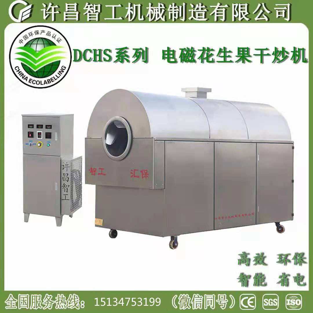 【许昌智工】全自动多功能电磁炒货机,纯不锈钢制作,永不生锈,干净卫生高大上!20年专业技术生产经验!采用机电分离结构,性能稳定寿命长!电磁感应内加热方式,环保节能零排放!微电脑控制,全自动控温,炒熟自动停止加热,同时报警提醒!保证不会炒糊,省心省事省人工!炒油料,炒干果,炒杂粮,炒调料,炒中药,炒茶叶,炒化工,做膨化……所向无敌!适用领域范围广!