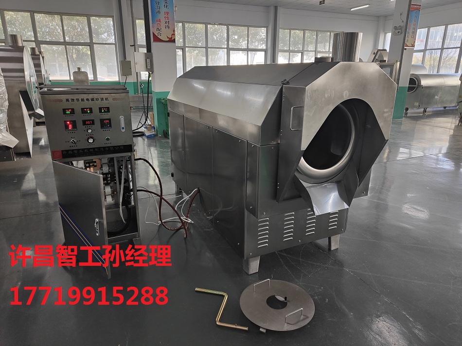 许昌智工电磁炒货机,多功能,电磁加热,节能环保,自动恒温,自动炒制,自动出锅,操作简单,自动化程度高,节约人力时间成本,多功能机器应用广泛,炒制物料种类多。