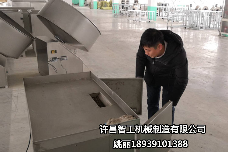 2019年1月24日郑州月旺食品李总一行两人来到许昌智工再次商谈采购元宵制馅机,汤圆滚制机!汤圆元宵制馅机和滚圆机是配套设备,汤圆制馅机是直接将各种馅料压制出圆球型汤圆陷,汤圆机是把压制好的馅料放在里边,再放一些干的糯米粉一层一层滚制成成品的设备。代替手工制作,又不失传统风味的汤圆机器。