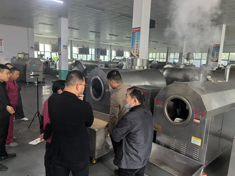河南平顶山知名芝麻香油厂家来厂试机考察200斤芝麻炒锅