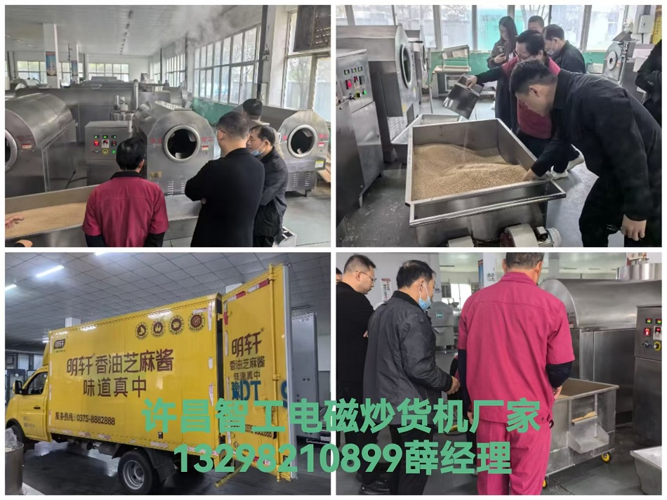 10月12日,河南平顶山明轩小磨香油厂来厂考察200斤炒芝麻锅。炒制的芝麻鼓肚饱满。