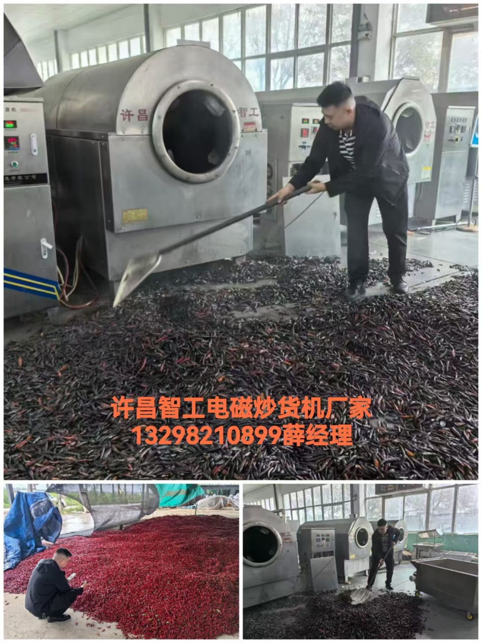 10月12日,贵州客户来厂考察电磁炒货机炒辣椒。