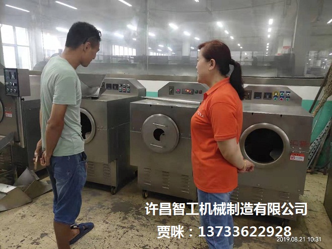 江西客户到许昌智工试机DCCZ5-4小型电磁炒货机