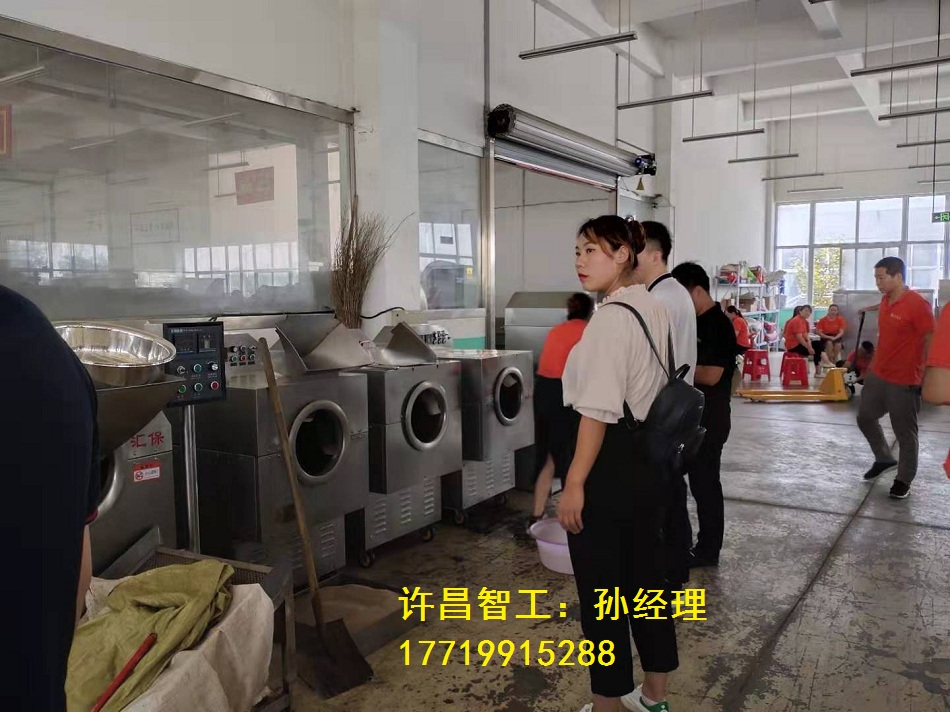 炒瓜子设备一改过去人工炒制污染大,小型炒瓜子机劳动强度大,效率低,成本高的缺点,我们许昌智工生产的炒货机干净卫生,占地面积小,环保无污染,是当今性价比较高的炒货设备!