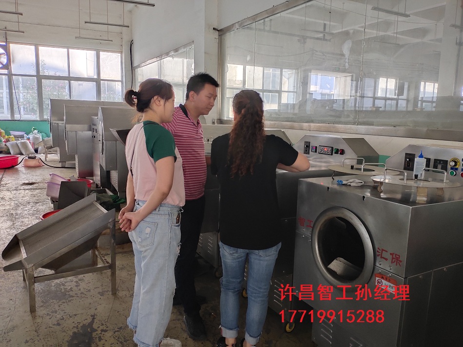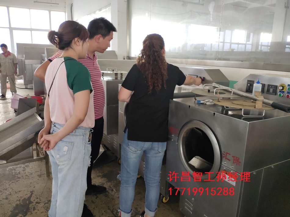 9月5日,河南郑州客户两口子开车来许昌智工考察小型多功能炒货机,我们销售经理耐心地讲解机器使用和操作,------期待与您合作!咨询热线:17719915288孙经理(微信同号)