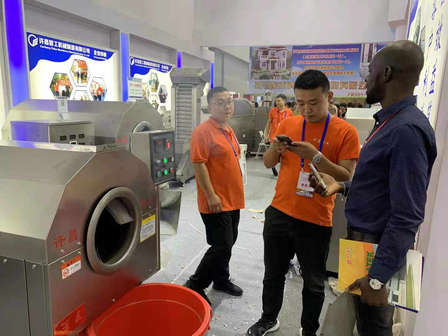 9月8日,许昌智工电磁炒货机,河南驻马店展会现场,以其优良的品质深受大量外国朋友的青睐,买电磁炒货机请认准【许昌智工】品牌