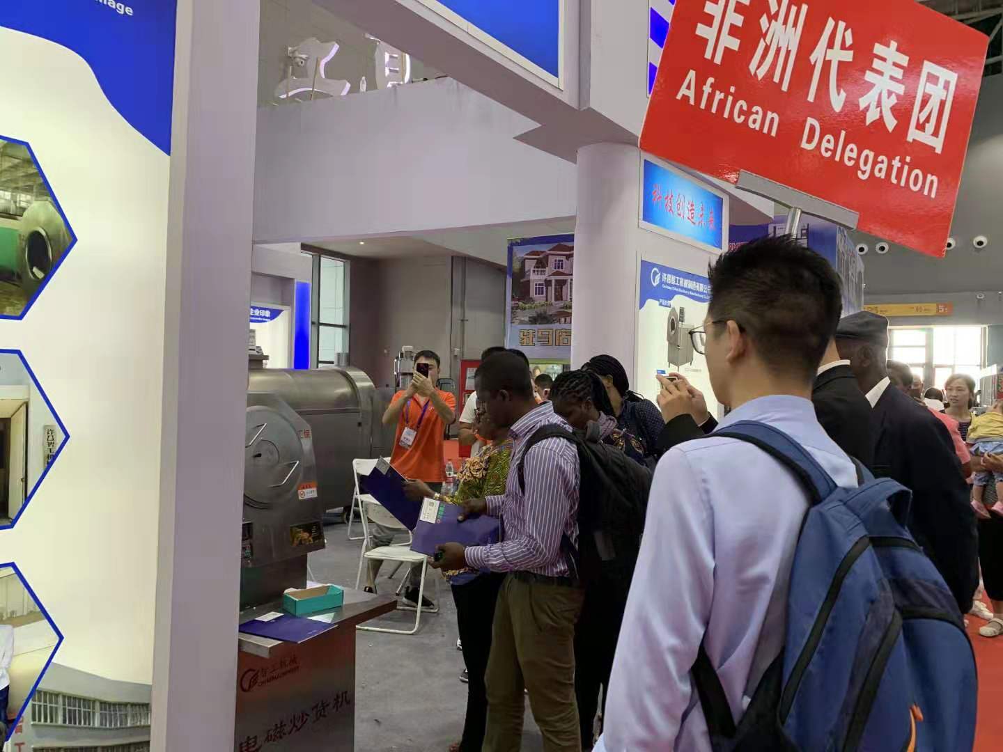 许昌智工电磁炒货机河南驻马店展会现场深受大量外国朋友的青睐