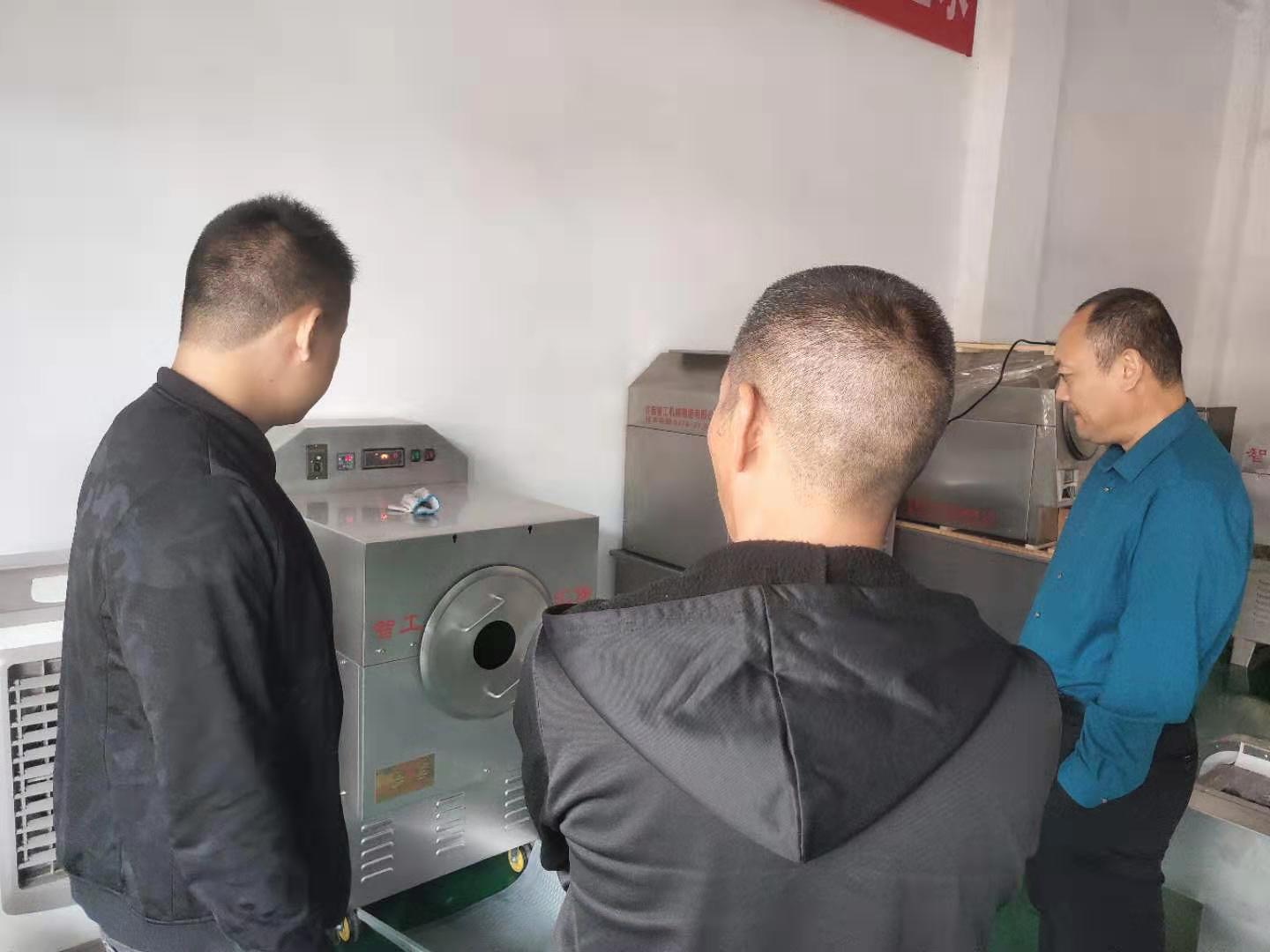 2019年9月20日,河南长葛客户自带一包栗子来许昌智工参观考察多功能电磁炒货机并试机DCCZ3-6型电磁炒货机炒制板栗,栗子出锅后客户对许昌智工电磁炒货机的炒制效果给与高度评价,并现场定机DCCZ3-6型电磁炒货机一台。