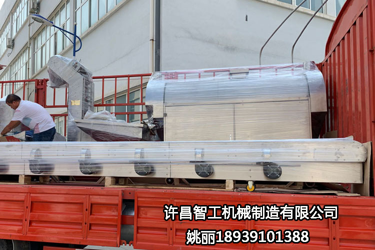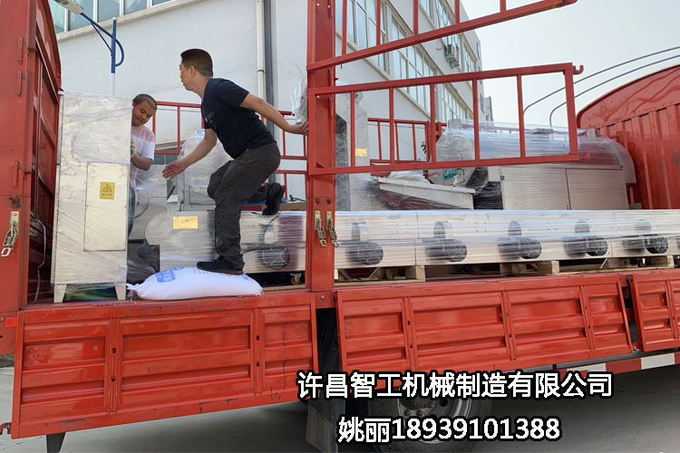 2019年9月28日,甘肃金昌马总订购的两米电磁炒货机生产线和多功能炒货机装车发货了,许昌智工电磁炒货机生产线全自动化操作省时省力省人工!