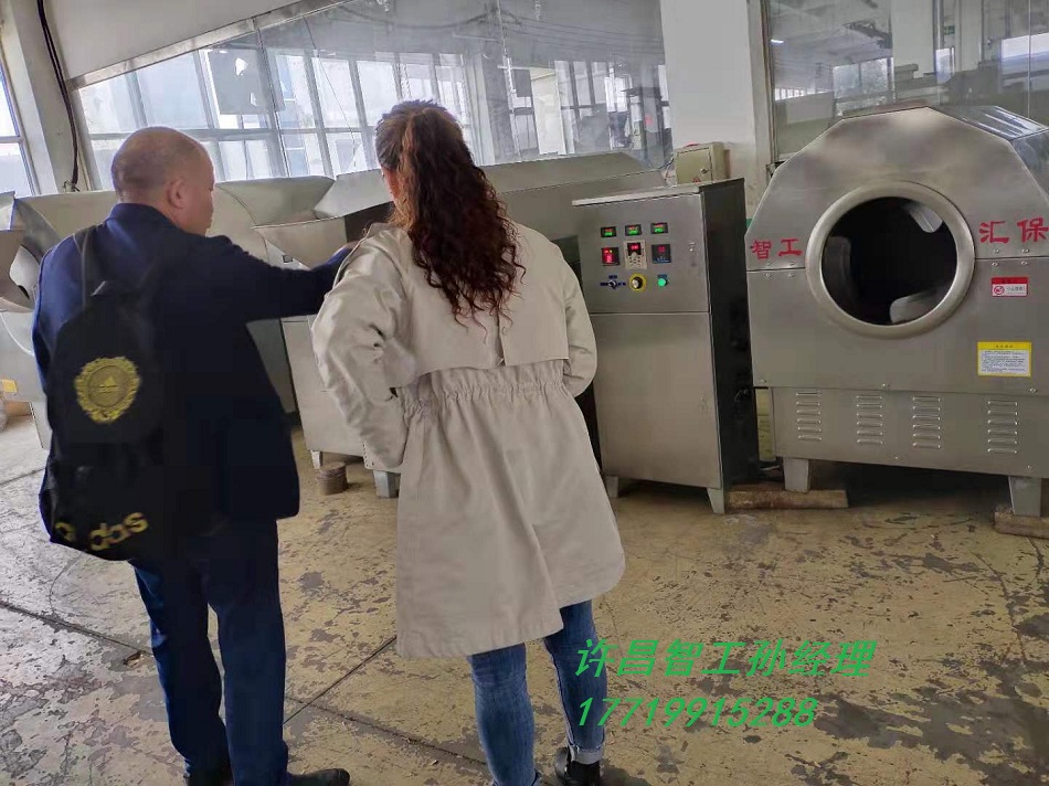 2019年10月17日,四川攀枝花刘总来我们许昌智工考察炒瓜子机,经过测试和详细了解,刘总对炒制效果赞不绝口,非常满意,现场签单订了一款DCCZ7-15炒货机,一锅装可110斤葵花子。------预祝刘总生意兴隆!合作愉快!全国订机热线17719915288孙经理(微信同号)