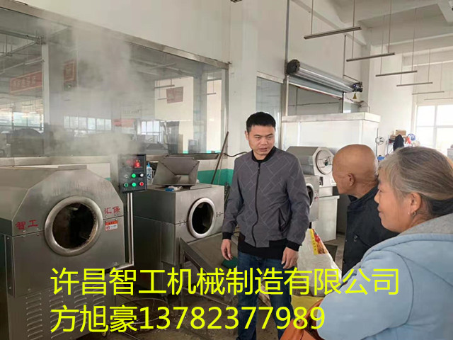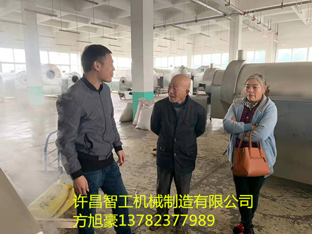 2019年10月26日,驻马店客户驱车200公里来到许昌智工试机电磁炒货机炒制芝麻