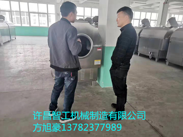 2019年11月3日,上 海客户来许昌智工考察240斤电磁炒芝麻设备。