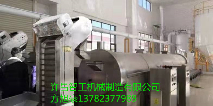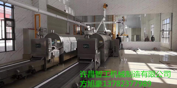 11月14日,四川甘孜客户购买许昌智工的六米电磁流水线电磁炒货机安装调试完毕,炒制青稞中。